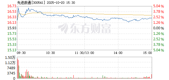 先进数通盘中快速回调,5分钟内跌幅超过2%,截至9点36分,报16.34元,成交8122.96万元,换手率1.28%。