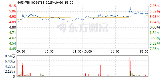中超控股盘中快速上涨,5分钟内涨幅超过2%,截至9点40分,报5.02元,成交1.43亿元,换手率2.16%。