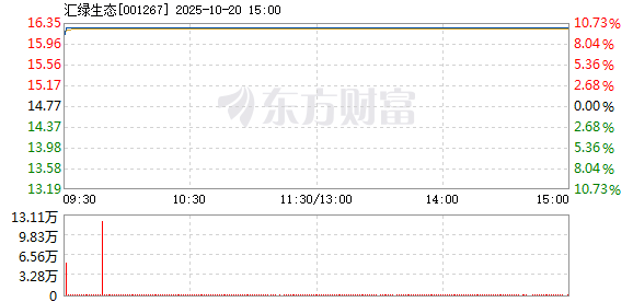 汇绿生态盘中打开涨停,现报16.11元,成交3.47亿元,换手率3.52%。该股之前于9点30分涨停。
