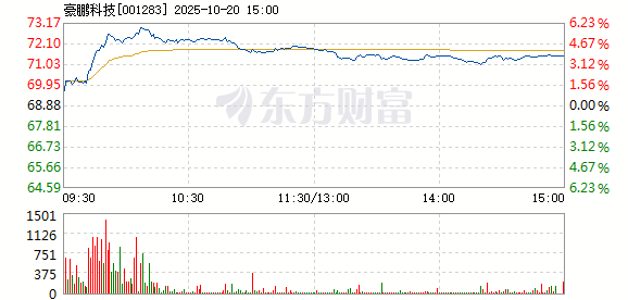 豪鹏科技10月20日盘中涨幅达5%