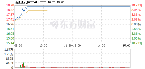 瀛通通讯盘中涨停,报18.66元,目前封单326184手,折合6.09亿元。截至目前,成交1.16亿元,换手率4.24%。