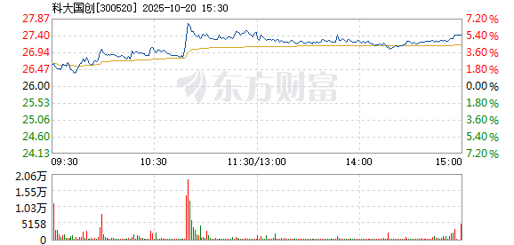 科大国创10月20日盘中涨幅达5%