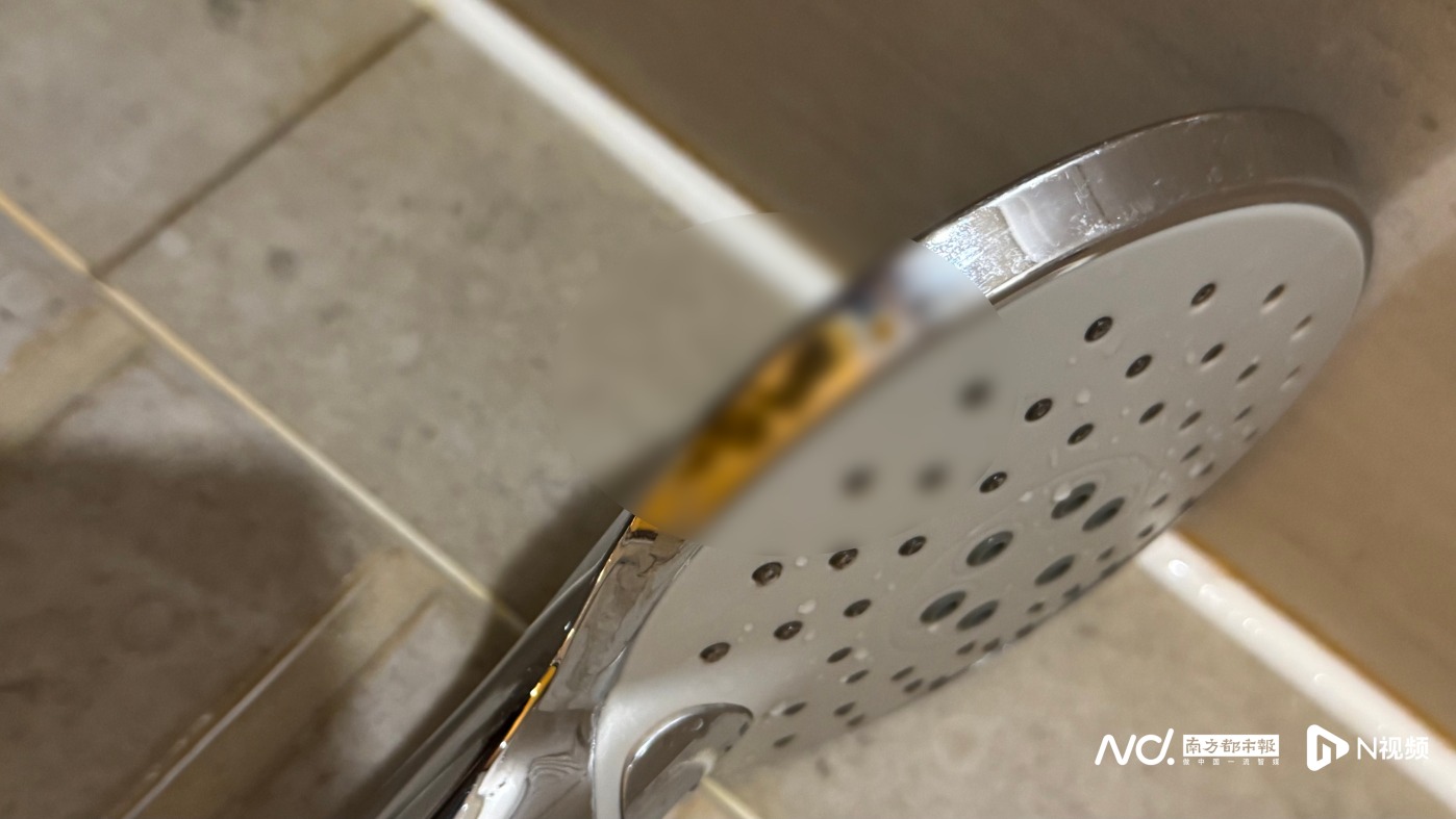 张小姐提供的照片显示,花洒边缘有明显黄色异物。