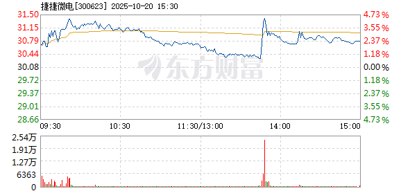以下是捷捷微电在北京时间10月20日13:48分盘口异动快照:10月20日,