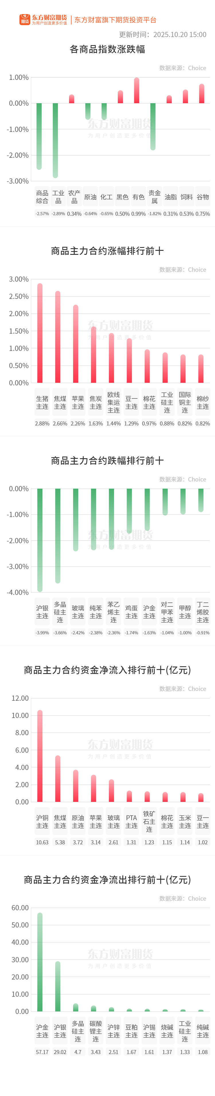 生猪:据国家发改委数据,截至10月15日,全国生猪出场价格为11.90元/公斤,较10月8日下跌6.08%;主要批发市场玉米价格为2.28元/公斤,较10月8日下跌1.72%;猪粮比价为5.22,较10月8日下跌4.40%。(发改委)