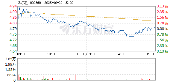 法尔胜盘中快速回调,5分钟内跌幅超过2%,截至9点30分,报4.81元,成交1420.97万元,换手率0.69%。