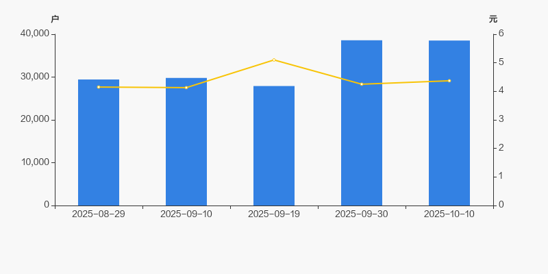 2025年8月29日至今,公司股东户数显著增长,区间涨幅为30.90%。2025年8月29日至2025年10月10日区间股价上涨5.30%。