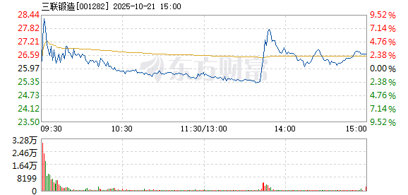 三联锻造开盘涨幅达5%,截至9点30分,报27.29元,成交7641.07万元,换手率3.69%。