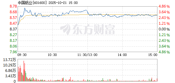 以下是中国铝业在北京时间10月21日09:34分盘口异动快照:10月21日,