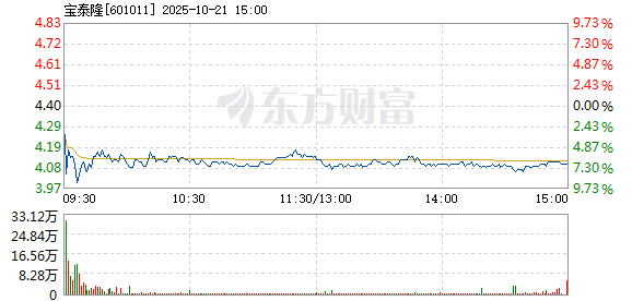 宝泰隆盘中快速反弹,5分钟内涨幅超过2%,截至9点40分,报4.08元,成交5.11亿元,换手率6.46%。