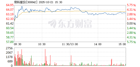 帝科股份10月21日盘中涨幅达5%