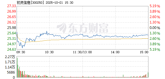 初灵信息盘中快速反弹,5分钟内涨幅超过2%,截至9点48分,报25.34元,成交3.49亿元,换手率8.82%。