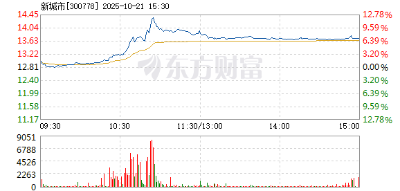 新城市盘中涨幅达5%,截至10点36分,报13.48元,成交7483.71万元,换手率2.80%。