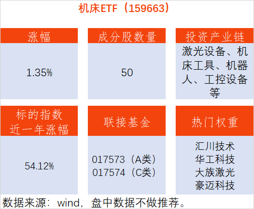 原标题:进口替代空间巨大!机床ETF(159663)上涨1.35%,四方达涨12%