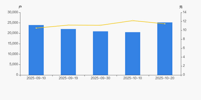2025年9月10日至今,公司股东户数有所增长,区间涨幅为5.28%。2025年9月10日至2025年10月20日区间股价上涨9.13%。
