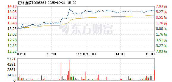 以下是汇源通信在北京时间10月21日11:00分盘口异动快照:10月21日,