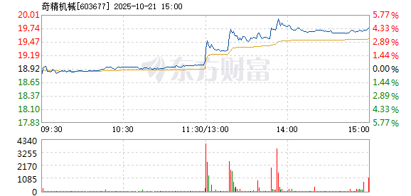 以下是奇精机械在北京时间10月21日13:00分盘口异动快照:10月21日,