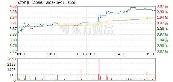 *ST沪科盘中快速上涨,5分钟内涨幅超过2%,截至13点22分,报3.98元,成交561.86万元,换手率0.45%。