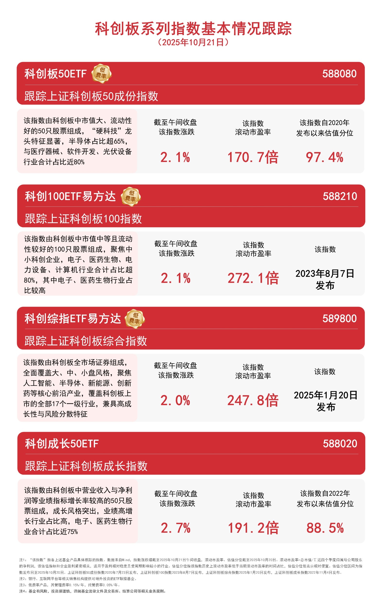 原标题:科创板系列指数集体涨超2%,关注科创板50ETF(588080)等产品投资机会