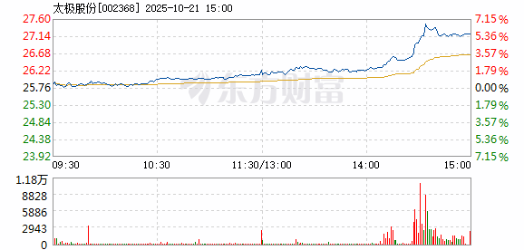 以下是太极股份在北京时间10月21日14:31分盘口异动快照:10月21日,