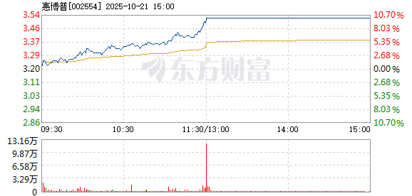 以下是惠博普在北京时间10月21日13:00分盘口异动快照:10月21日13点0分,