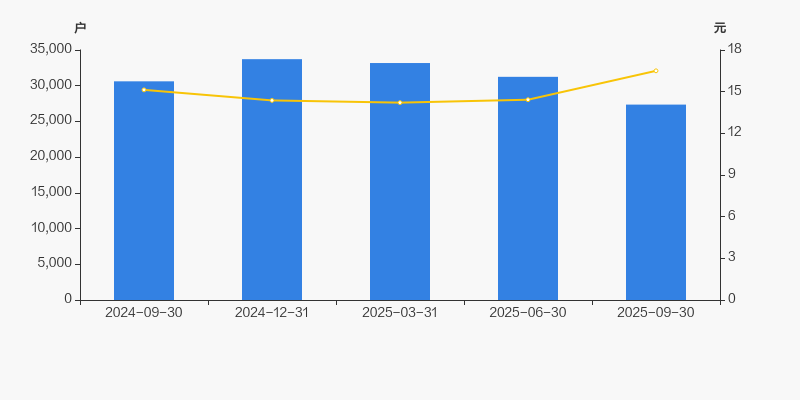 截至2025年9月30日,公司最新总股本为2.94亿股,其中流通股本为2.83亿股。户均持有流通股数量由上期的9062股上升至1.03万股,户均流通市值17.08万元。
