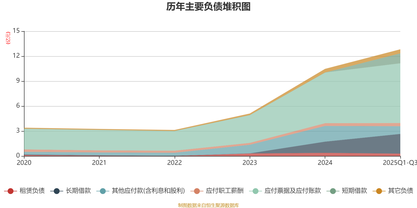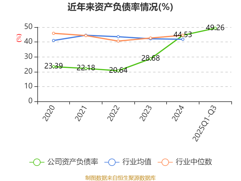 负债重大变化方面,截至2025年三季度末,公司短期借款占公司总资产的4.61%,上年末为0;其他应付款(含利息和股利)较上年末减少50.86%,占公司总资产比重下降4.46个百分点;长期借款较上年末增加75.98%,占公司总资产比重上升3.38个百分点;应付票据及应付账款较上年末增加17.82%,占公司总资产比重上升1.67个百分点。