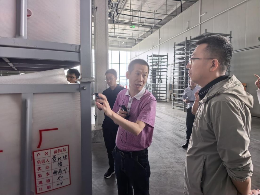 罗鹏(中)介绍标果工厂图片来源:每经记者丁舟洋摄