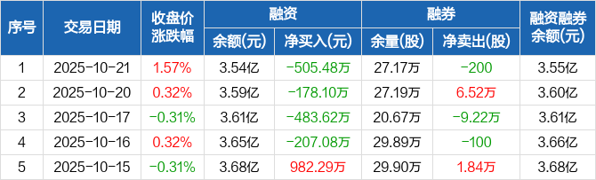 日照港融资融券信息显示,2025年10月21日融资净偿还505.48万元;融资余额3.54亿元,较前一日下降1.41%。