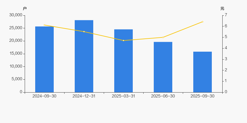 自2024年12月31日以来,公司股东户数连续3期下降,截至目前减幅为43.71%。2024年12月31日至2025年9月30日区间股价上涨16.30%。