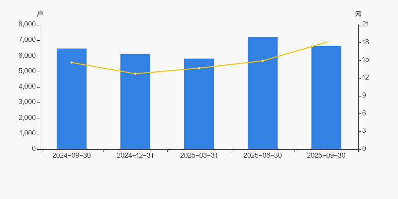 2024年9月30日至今,公司股东户数有所增长,区间涨幅为2.76%。2024年9月30日至2025年9月30日区间股价上涨23.31%。