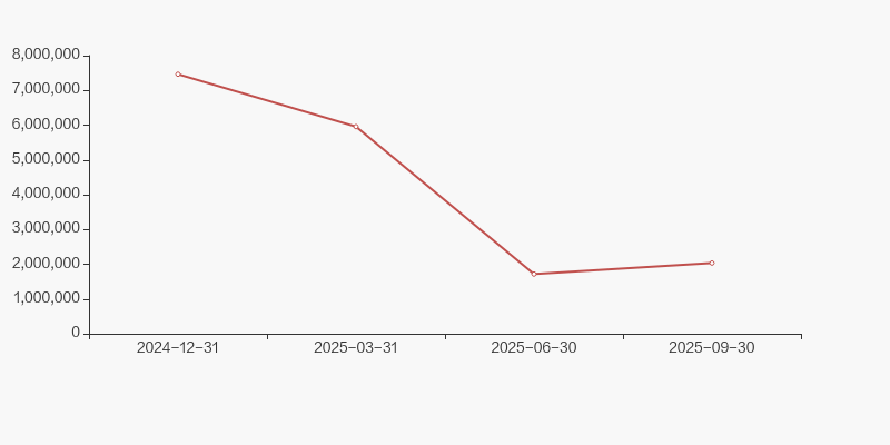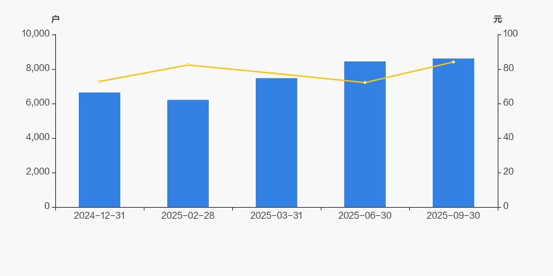 自2025年2月28日以来,公司股东户数连续3期上涨,截至目前增幅为38.55%。2025年2月28日至2025年9月30日区间股价上涨2.12%。