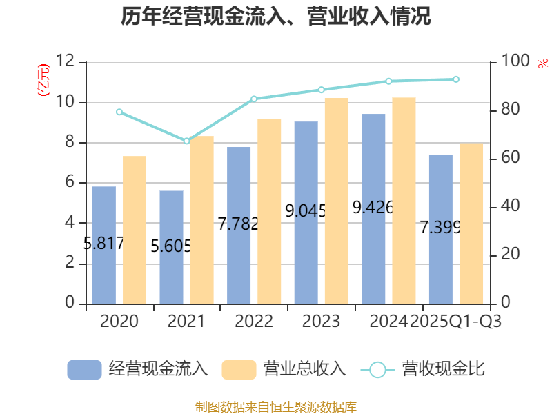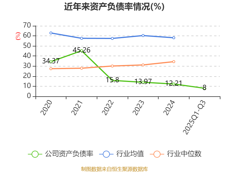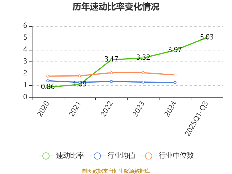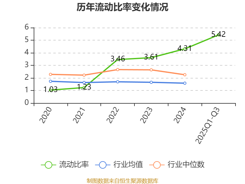2025年前三季度,公司流动比率为5.42,速动比率为5.03。