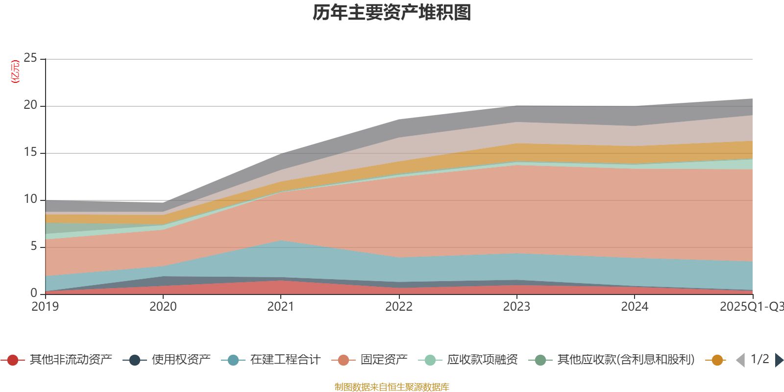 资产重大变化方面,截至2025年三季度末,公司应收款项融资较上年末增加144.61%,占公司总资产比重上升2.91个百分点;货币资金较上年末增加27.67%,占公司总资产比重上升2.44个百分点;其他非流动资产较上年末减少57.13%,占公司总资产比重下降2.2个百分点;交易性金融资产合计较上年末减少100%,占公司总资产比重下降1.55个百分点。