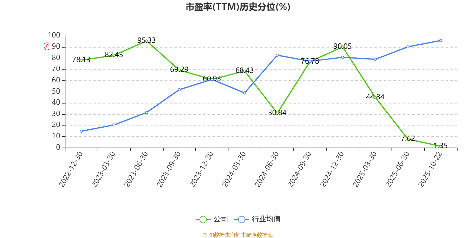 市盈率、市净率为负时,不显示当期分位数,会导致折线图中断。