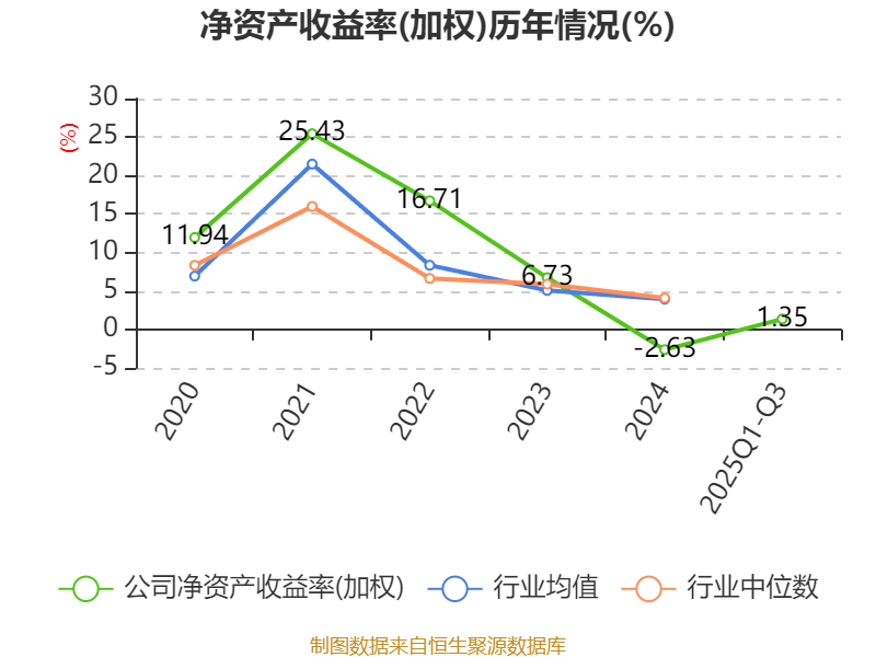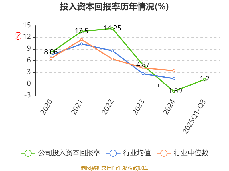 盈利能力方面, 2025年前三季度公司加权平均净资产收益率为1.35%,同比上升1.52个百分点。公司2025年前三季度投入资本回报率为1.2%,较上年同期上升1.03个百分点。