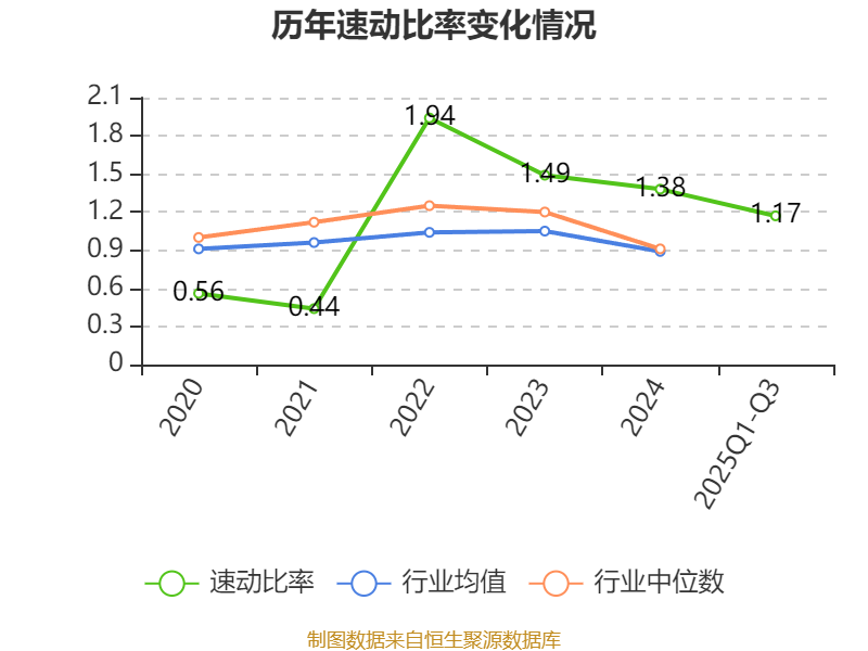 2025年前三季度,公司流动比率为1.46,速动比率为1.17。