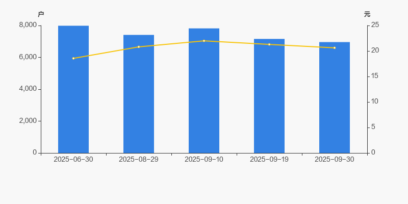 截至2025年9月30日,公司最新总股本为1.19亿股,其中流通股本为7335.92万股。户均持有流通股数量由上期的1.02万股上升至1.05万股,户均流通市值21.73万元。