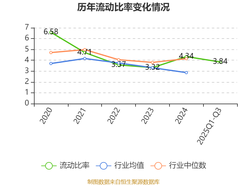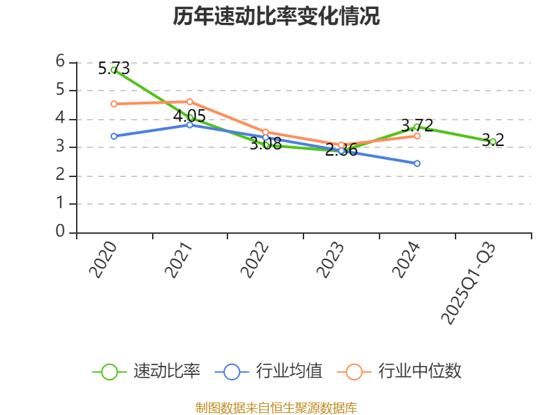 2025年前三季度,公司流动比率为3.84,速动比率为3.2。