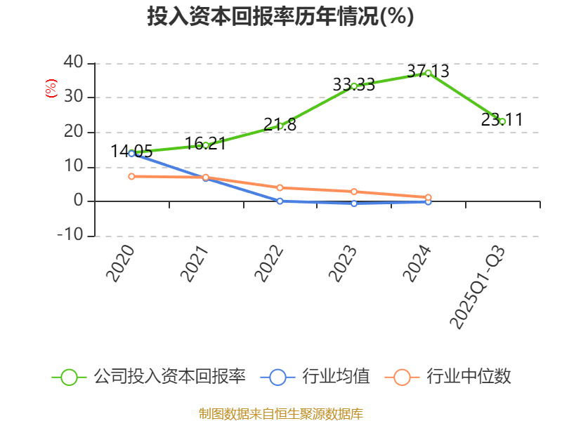 盈利能力方面, 2025年前三季度公司加权平均净资产收益率为23.82%,同比下降2.83个百分点。公司2025年前三季度投入资本回报率为23.11%,较上年同期下降3.46个百分点。