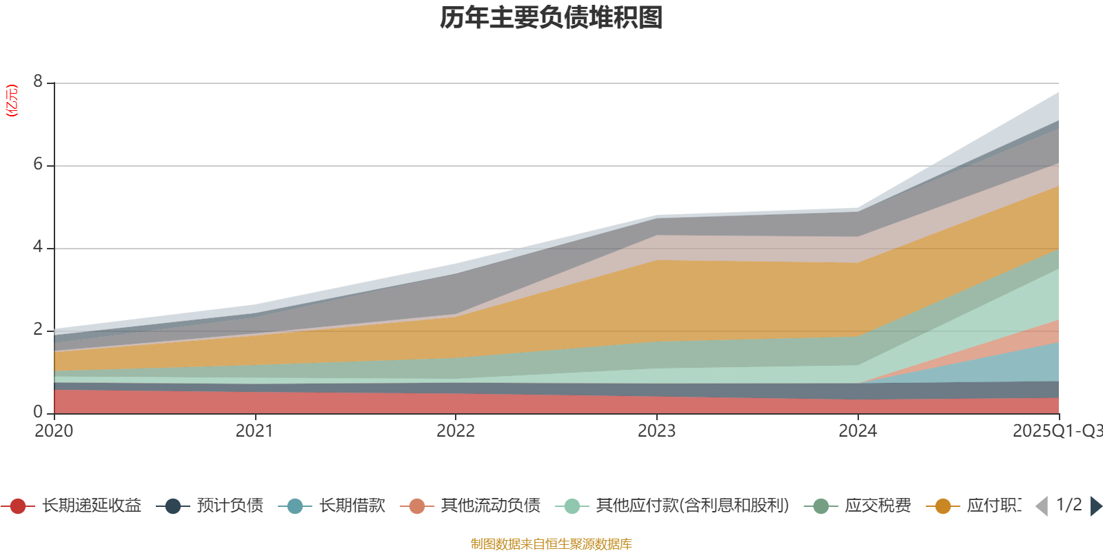 负债重大变化方面,截至2025年三季度末,公司长期借款占公司总资产的2.48%,上年末为0;其他应付款(含利息和股利)较上年末增加184.87%,占公司总资产比重上升1.84个百分点;应付职工薪酬较上年末减少14.68%,占公司总资产比重下降1.83个百分点;其他流动负债较上年末增加44053.97%,占公司总资产比重上升1.43个百分点。