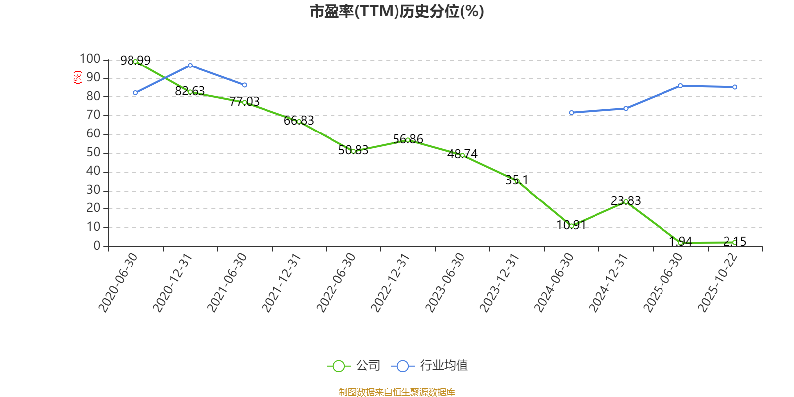 市盈率、市净率为负时,不显示当期分位数,会导致折线图中断。