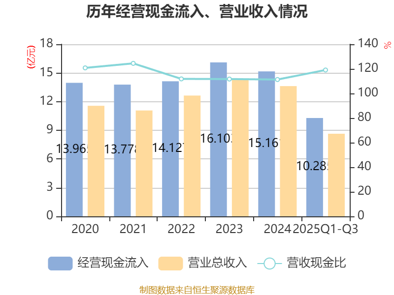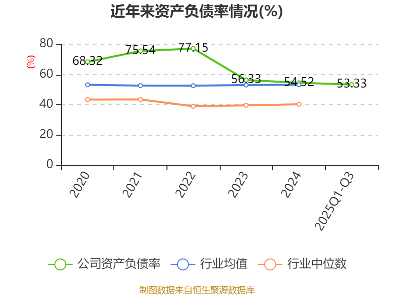 2025年前三季度,公司流动比率为1.34,速动比率为0.82。