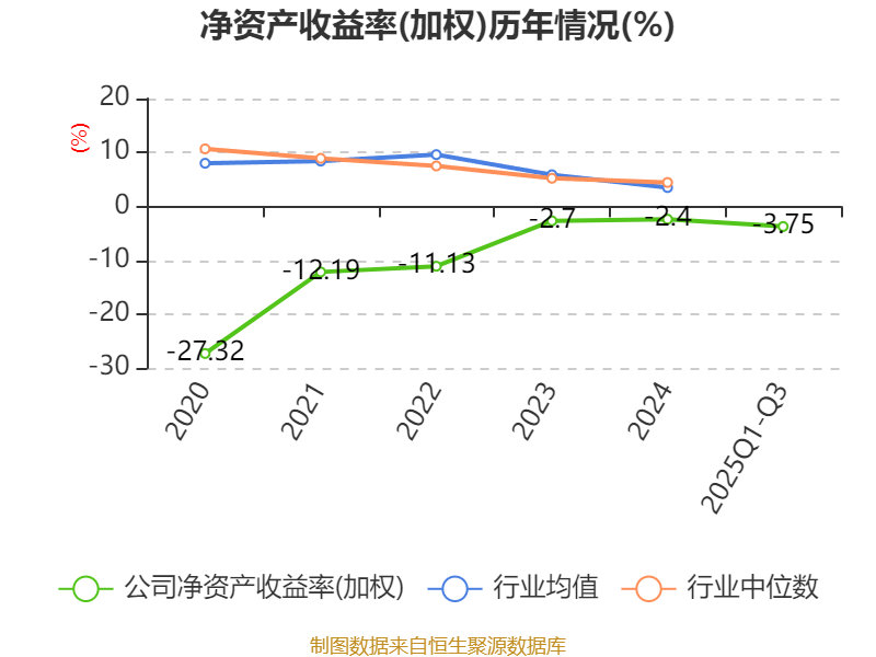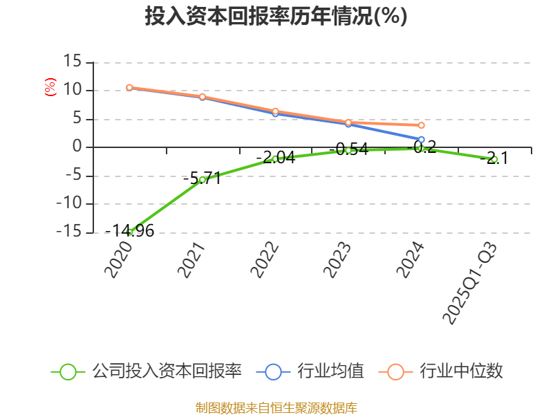 盈利能力方面, 2025年前三季度公司加权平均净资产收益率为-3.75%,同比下降3.48个百分点。公司2025年前三季度投入资本回报率为-2.1%,较上年同期下降3.34个百分点。