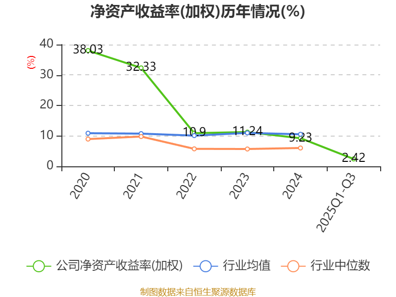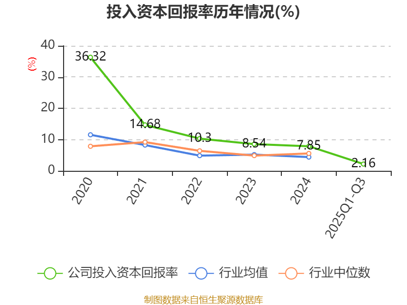 盈利能力方面, 2025年前三季度公司加权平均净资产收益率为2.42%,同比下降3.18个百分点。公司2025年前三季度投入资本回报率为2.16%,较上年同期下降2.55个百分点。
