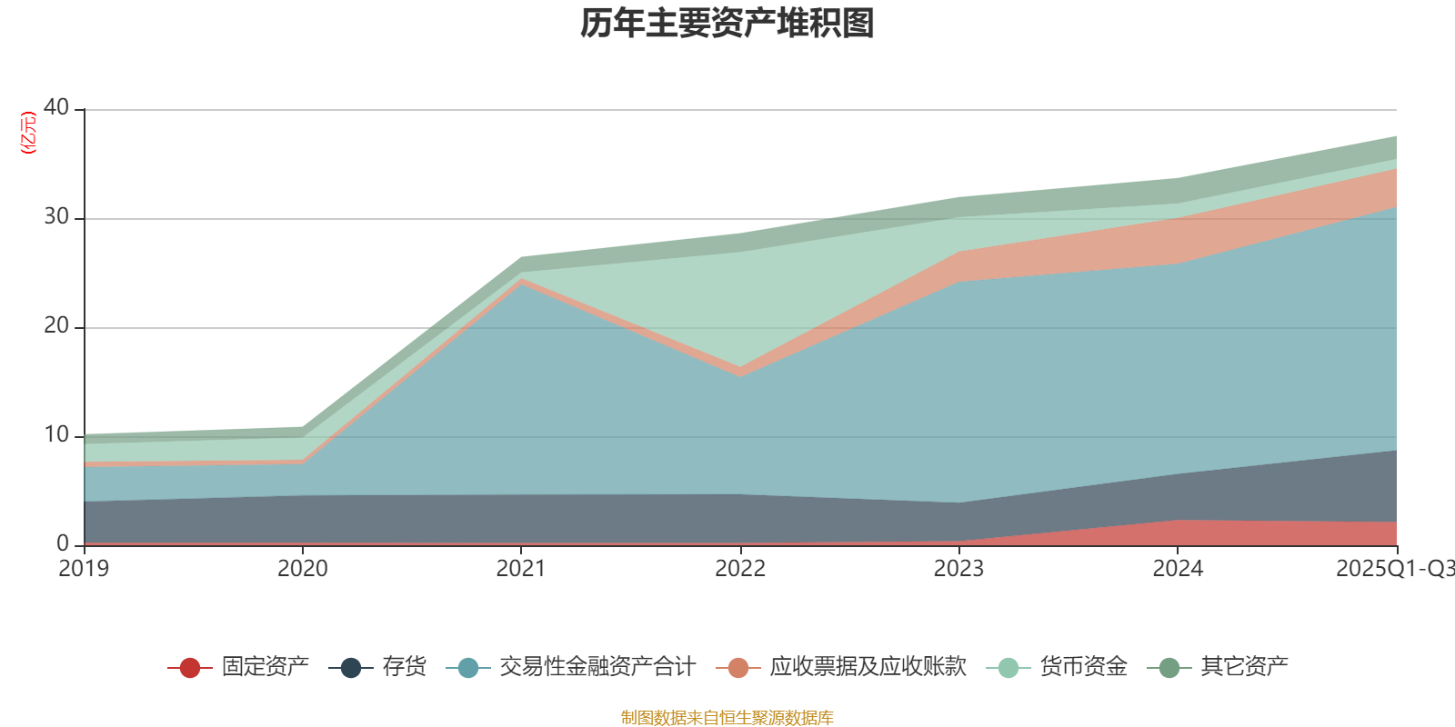 资产重大变化方面,截至2025年三季度末,公司存货较上年末增加55.76%,占公司总资产比重上升4.99个百分点;应收票据及应收账款较上年末减少16.09%,占公司总资产比重下降3.08个百分点;交易性金融资产合计较上年末增加15.72%,占公司总资产比重上升2.2个百分点;货币资金较上年末减少33.06%,占公司总资产比重下降1.56个百分点。