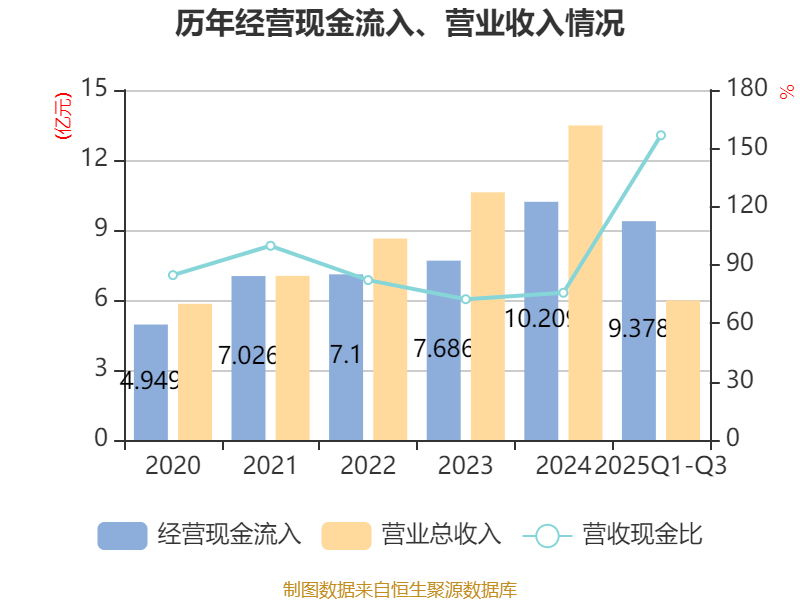 2025年前三季度,公司流动比率为2.57,速动比率为2.08。