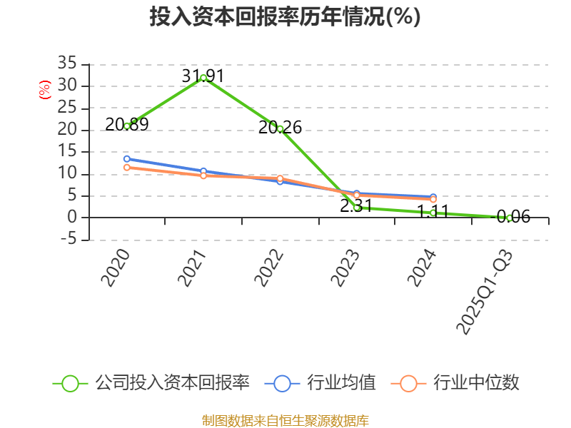 盈利能力方面, 2025年前三季度公司加权平均净资产收益率为-0.03%,同比下降0.86个百分点。公司2025年前三季度投入资本回报率为-0.06%,较上年同期下降0.84个百分点。