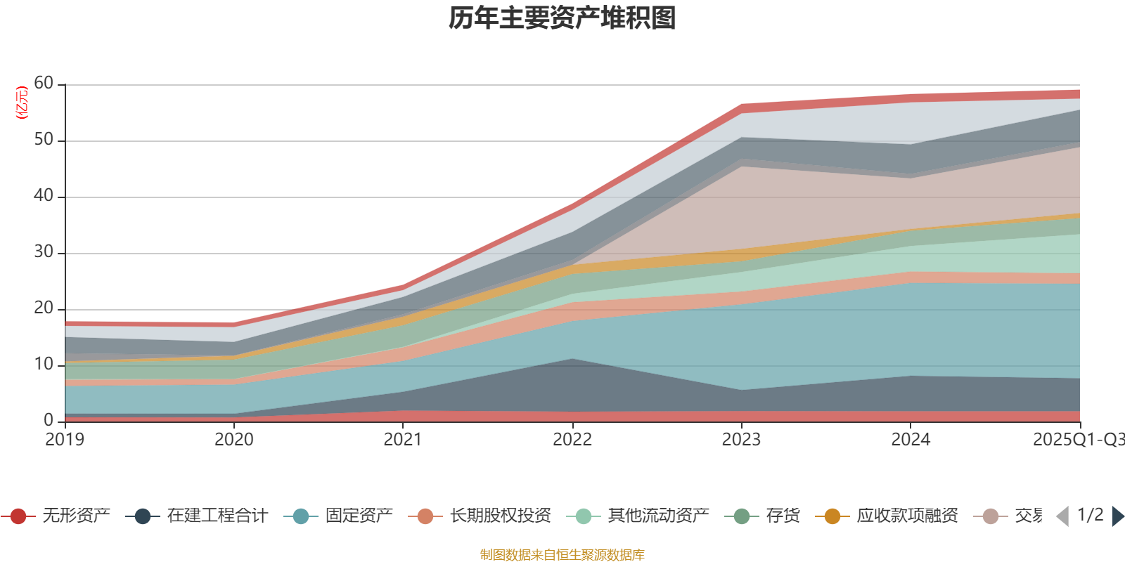资产重大变化方面,截至2025年三季度末,公司货币资金较上年末减少73.59%,占公司总资产比重下降9.46个百分点;交易性金融资产合计较上年末增加30.08%,占公司总资产比重上升4.39个百分点;其他流动资产较上年末增加53.59%,占公司总资产比重上升4个百分点;应收款项融资较上年末增加170.92%,占公司总资产比重上升0.95个百分点。