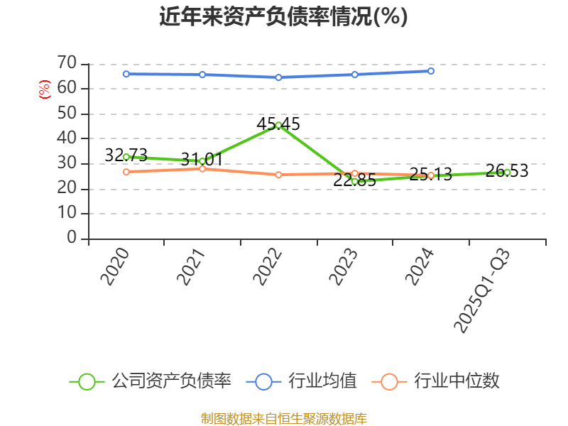 2025年前三季度,公司流动比率为2.91,速动比率为2.65。